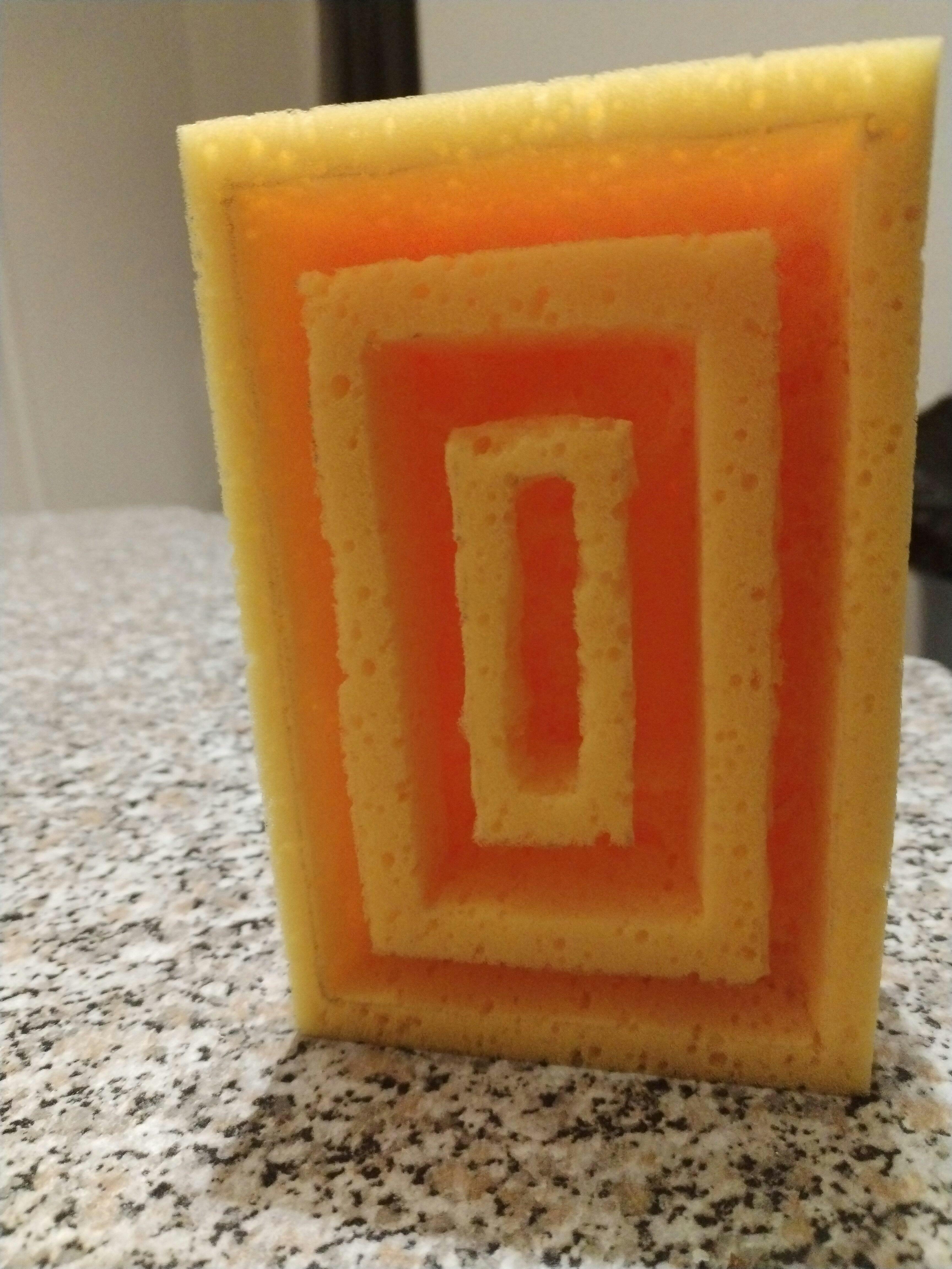 Discover the Labyrinth Sponge , available in two sizes to suit all your needs. Part of our Geometric Collection , this unique sponge will make cleaning captivating: watch the foam burst forth in a creamy explosion through its sculpted openings! A tool that is both effective and visually stunning.